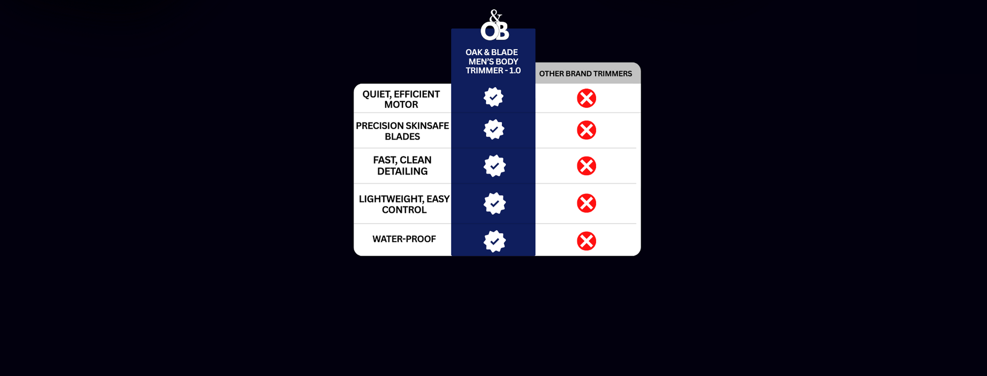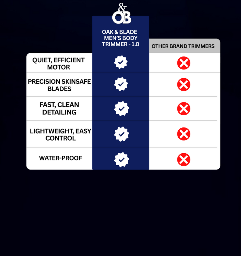 Every Oak & Blade product is built with purpose — crafted from premium material and engineered for performance. From looks to results, each Oak & Blade body trimmer is designed to deliver clean, fresh, and effortless refinement.